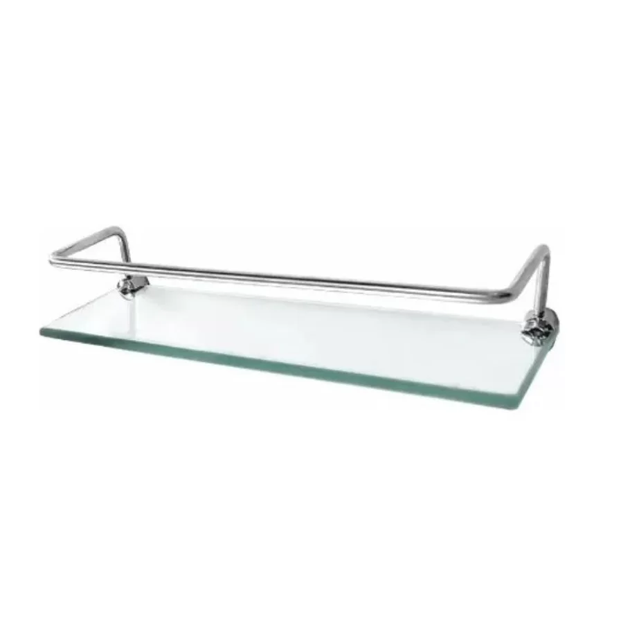 / Porta Shampoo Luxo 40 cm Reto Alumínio Base Vidro 8 Mm