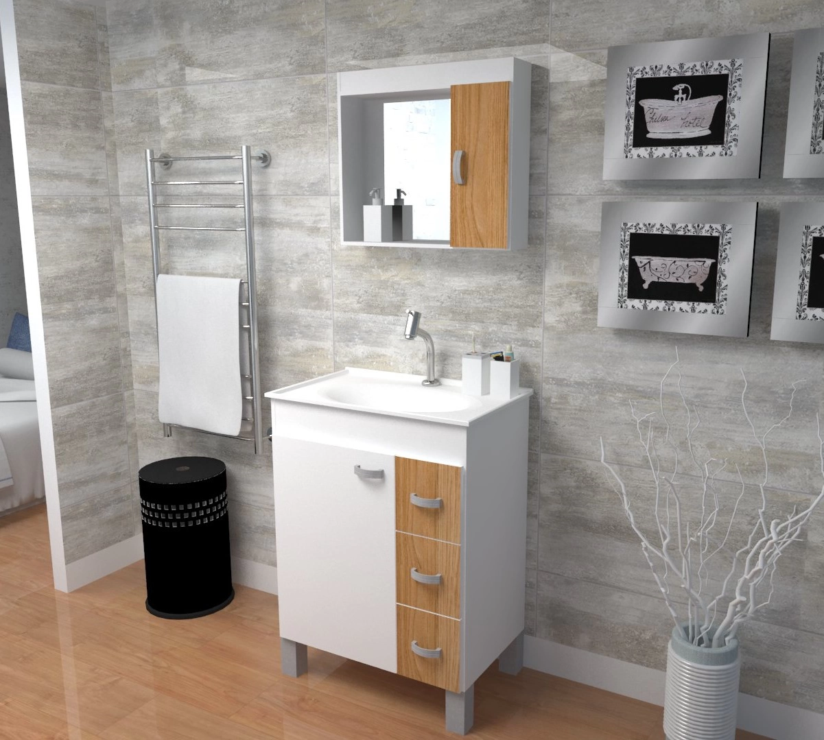 Gabinete Armário Para Banheiro Com Cuba e Espelheira Brava 60 cm Carvalho